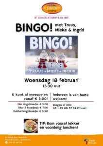 Woensdag 18 februari organiseren Truus, Mieke en Ingrid weer de gezellige woensdagmiddag bingo!