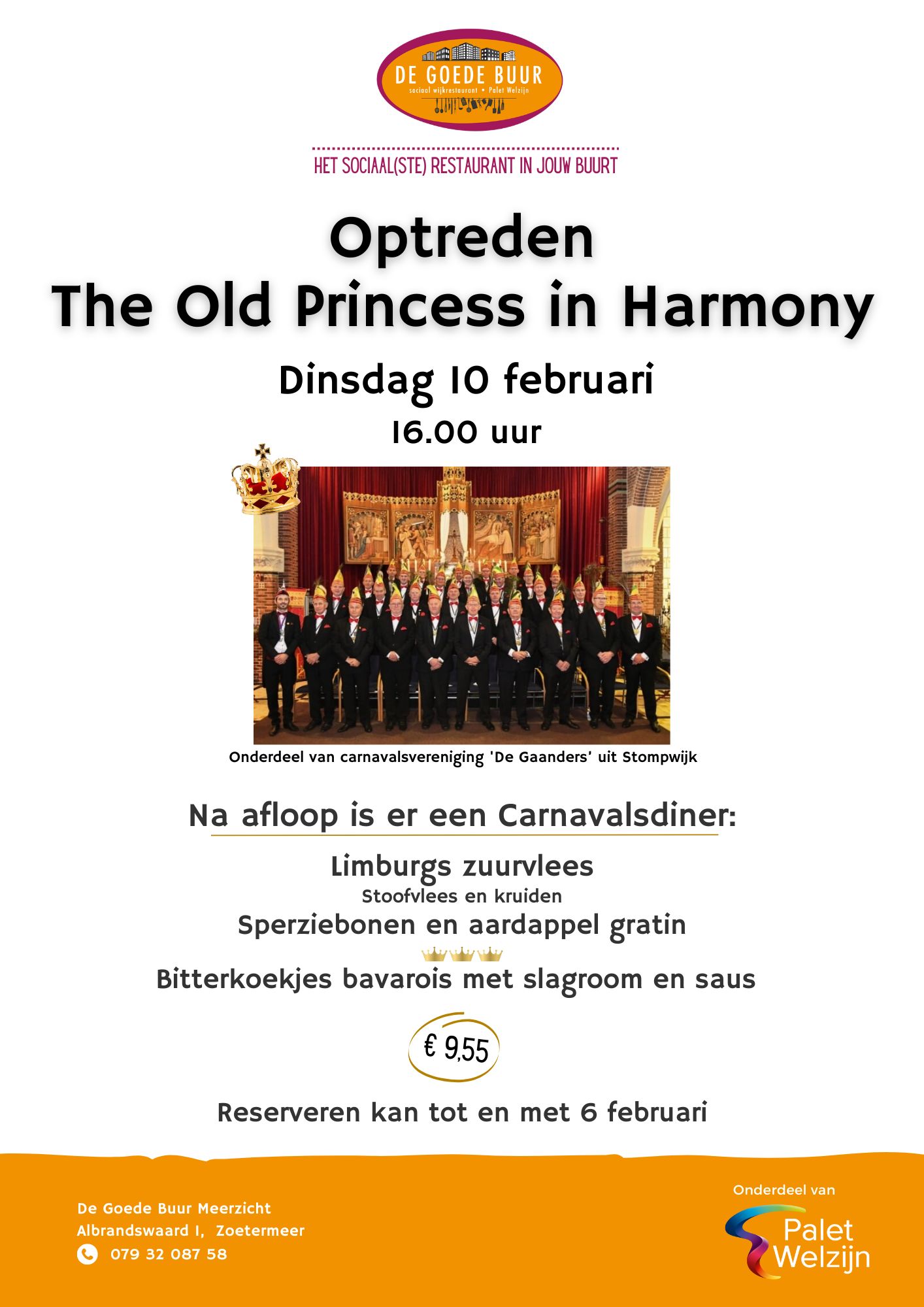 Kom genieten van het optreden bij de Albrandswaard op dinsdag 10 februari