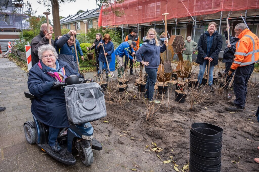 Wethouder Marijke van der Meer gaf het startsein iets eerder dan gepland, het was toen even droog en ze prees de betrokkenheid van de buurt.